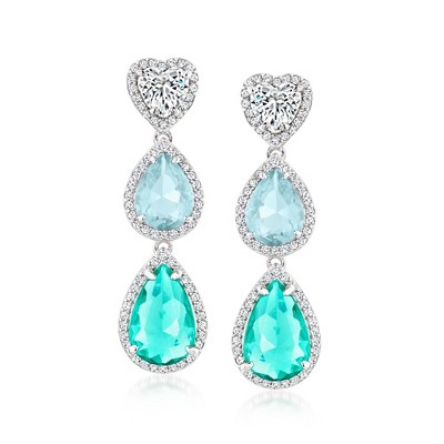 Ross-Simons Italian 2.20 ct. t.w. CZ Heart Drop Earrings With 4.00 ct. t.w. Simulated Green Tourmalines and 3.20 ct. t.w. Simulated Aquamarines in