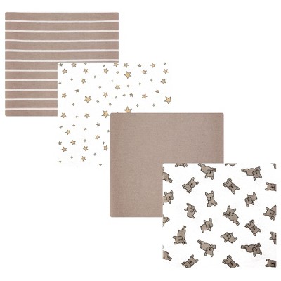 Hudson Baby Infant Cotton Poly Flannel Receiving Blankets 4-Pack, French Bulldog Stars, One Size