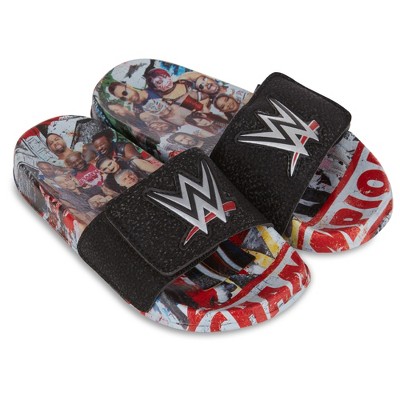 Mens SpongeBob SquarePants Slide Sandals - Spongebob Shoes - Spongebob, Patrick, Squidward, Sandy, Mr. Krabs Slides (Black Red, 12/13)