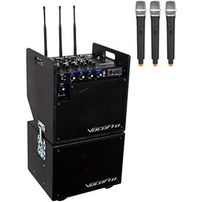 VOCOPRO Battery Powered P.A. System w/Subwoofer Includes three wireless mics & modules & one SD recorder module MOBILEMAN2