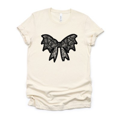 Rerun Island Women's Bow Butterfly Short Sleeve Graphic Cotton Baby Tee - Cloud Dancer XL
