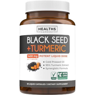 Black Seed Oil + Turmeric Liquid Capsules, Cold-Pressed Nigella Sativa with Turmeric Extract for Mobility & Immune Support, Health's Harmony, 60ct