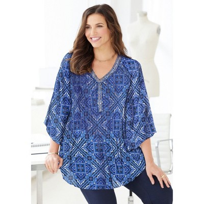 Catherines Petite Bejeweled Pleated Blouse
