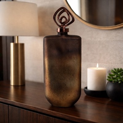 Sculptural Glass Vase with Topper for Home Decor - Decorative Flower Vase for Room, Bedroom, Office, and Table Centerpiece