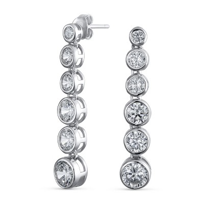 Bling Jewelry Elegant Sterling Silver CZ Linear Drop Earrings With Geometric Bubble Prom Cubic Zirconia In A Bezel Set Round Shape.