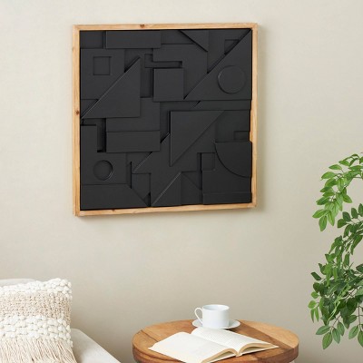 Olivia & May Set of 2 Canvas Abstract Small Square Framed Wall Art with Layered Geometric Shapes