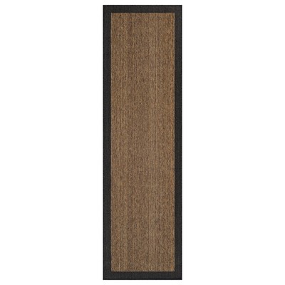 World Rug Gallery Geometric Border Indoor/Outdoor Flat Woven Area Rug - Natural Jute-Style, Easy-Care Patio Rug for Backyard Porch Deck Balcony