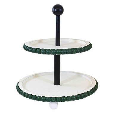 Ganz 11.5 Inch Green Beaded Edge Two-Tier Pedestal Stand Christmas , Distressed Rustic Holiday (1PC)