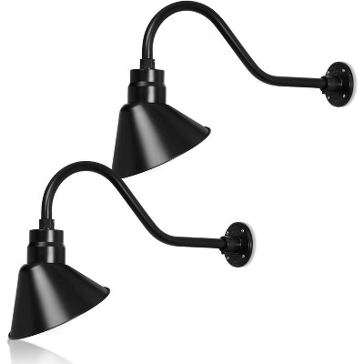 10in. Satin Black Angle Shade Gooseneck Sign Light Fixture Wall Sconce - 9W 900lm A19 LED Bulb (5000K Cool White) - 2 Pack