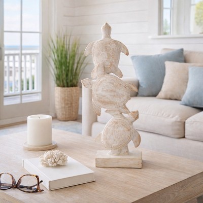 Sagebrook Home Coastal Stacked Turtle Figurine - Sculpture for Living Room, Office, Study, and Mantel - 16", White