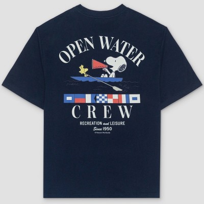 Men's Snoopy "Open Water Crew" Short Sleeve Graphic T-shirt - Navy Blue