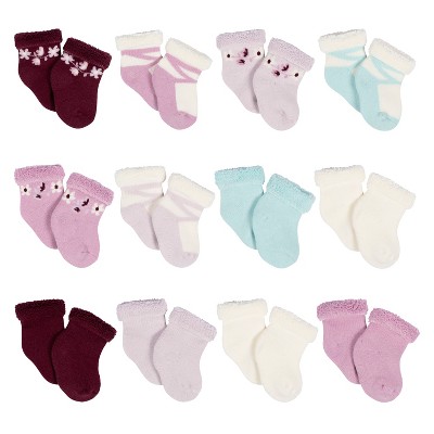 Gerber Baby Gilss' 12-Pack Terry Wiggle Proof® Socks Lavender Garden - 6-9 Months