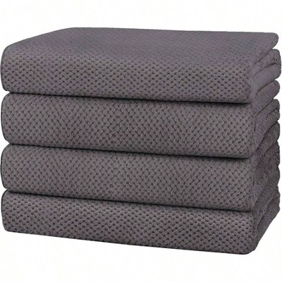 Grey Bath Towels Set of 4, 100 Cotton, Soft Absorbent, 55x27 for Hotels, Gyms, Spas