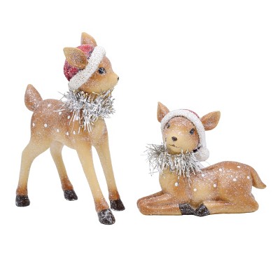 Transpac Brown Deer Figurines Set of 2 with Tinsel for Christmas Tabletop Decor Indoor Use Gift Giving and Hostess Gifts