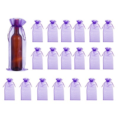 Unique Bargains Organza Drawstring Wine Bottle Wrapping Gift Bags 14.5" x 5.5" 20 Pcs