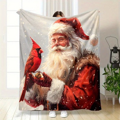 Lomsoe Santa Claus with Red Bird Print Flannel Blanket - All Seasons Soft Cozy Warm Throw Blanket for Bed, Napping, Camping, Travel, Office