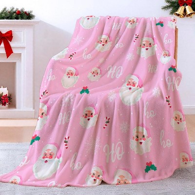 Lomsoe Merry Christmas Throw Blanket Ho Ho Xmas Holiday Party Blanket Cute Santa Claus Christmas Flannel Blanket.