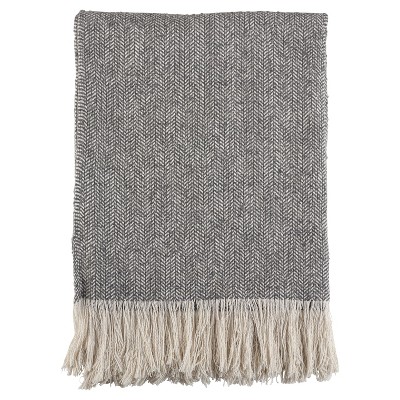 Gray Herringbone Pattern Fringe Throw Blankets (50"x60") - Saro Lifestyle