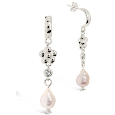 SHINE by Sterling Forever June CZ Flower & Pearl Hoop Earrings