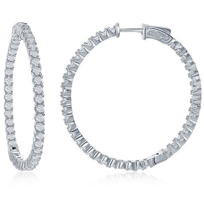 Bella Silver Sterling Silver 3x45mm Inside-Outside CZ Hoop Earrings - Silver