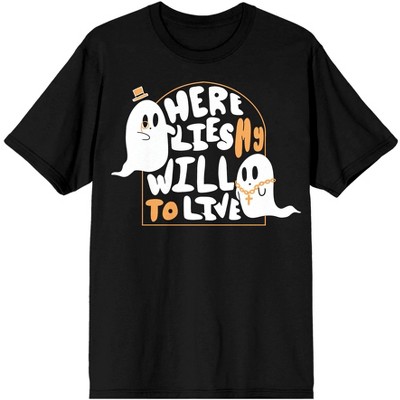 Halloween Two Dapper Ghosts Here Lies My Will to Live Men's Black Graphic Tee