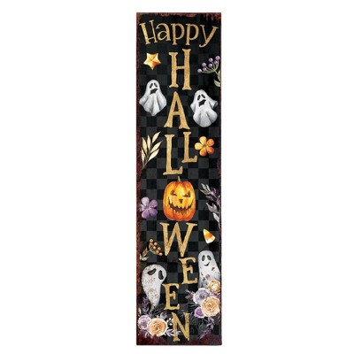 HomeRoots 36" Black Gold Orange And Purple Solid Wood Happy Halloween Ghost Porch Sign