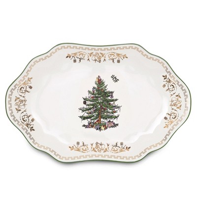 Spode Christmas Tree Gold Medium Oval Platter, 13-Inch Fine Porcelain - Decorative Christmas Tree Pattern with Gold Rim - Dishwasher, Freezer Safe