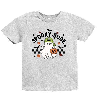 The Juniper Shop Spooky Dude Checkered Ghost Youth Long Sleeve Tee - L - Heather Grey