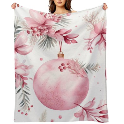 FIONECA Christmas Green Background Stocking Candy Cane Tree Poinsettia Soft Cozy Throw Blanket Holiday Festive Decor 50x60 inches