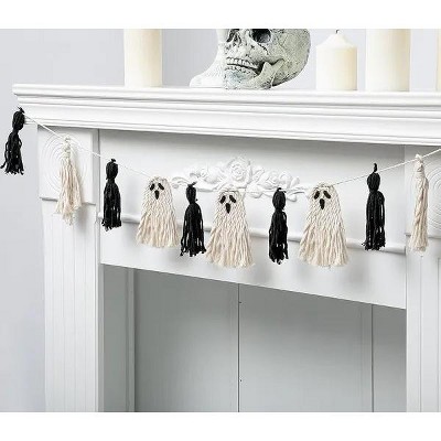 Gulches Embroidered Ghost Pillow ¨C 14x20 Fall Accent with Insert & Cover for Halloween Fireplace Decor, Spooky Web Trim