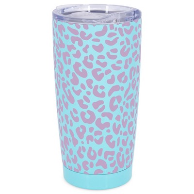 Elanze Designs 20 oz Stainless Steel On the Go Insulated Travel Tumbler With Push Top Lid, Lavender Purple Cheetah Leopard Print Sky Blue