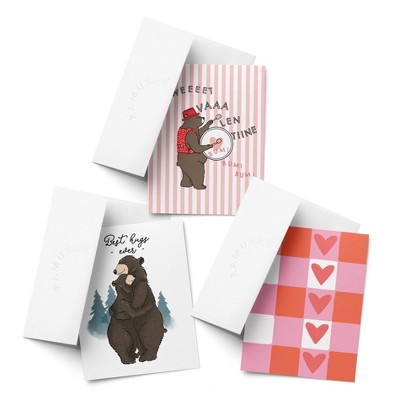 Valentine's Day Friendship Greeting Card Pack Sets, 'Sweet VA LEN TINE Bear, Best Hugs Ever, Heart Grid' (3 ct, Assorted) by Ramus & Co