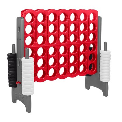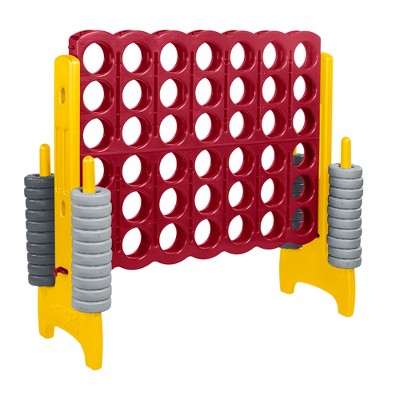 SUGIFT Giant 4 in a Row Game Set Outdoor Indoor Jumbo Connect Game with Basketball Hoop Golf Ring Toss Mesh Storage and Carrying Bag