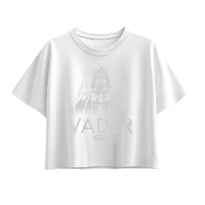 Girls' - Star Wars - Light Grey Mono Darth Vader Short Sleeve Boxy Graphic T-Shirt
