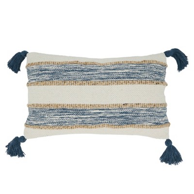 12"x20" Oversize Textured Striped Tassel Poly Filled Lumbar Throw Pillow Navy Blue - Saro Lifestyle: Cotton Weave, Zippered, Indoor Decor