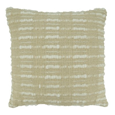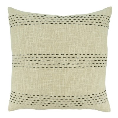 20"x20" Oversize Stitch Line Design Square Throw Pillow Cover Natural - Saro Lifestyle: Zipper Closure, Machine Washable