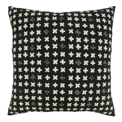 20"x20" Oversize Embroidered Crosses Design Square Throw Pillow Cover Black - Saro Lifestyle: Cotton, Zipper Closure, Sofa Decor