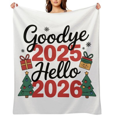 Soscooter Goodbye 2025 Hello 2026 Flannel Blanket Gift Christmas Tree Pattern Soft Cozy New Year Holiday Throw Blanket