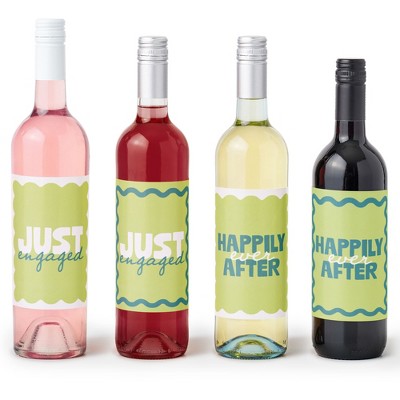 Big Dot of Happiness Teal Green and Yellow Wavy Engagement Party Wine Labels for Bottles, Retro Wedding Gift Decor, Just Engaged Stickers - Set of 4