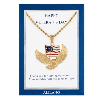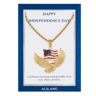 Alilang Flying Eagle with American Flag Pendant Necklace with Patriotic Gift Message Card Envelope Jewelry Gift