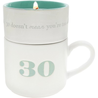 Pavilion Gift Company - 30th Birthday - Wax Reveal Suprise Hidden Message Jasmine Scented Candle & 11 Oz Mug Present
