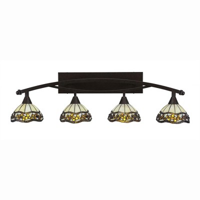 Toltec Lighting Bow 4 - Light Vanity in Bronze with 7'' Roman Jewel Art Glass Shade