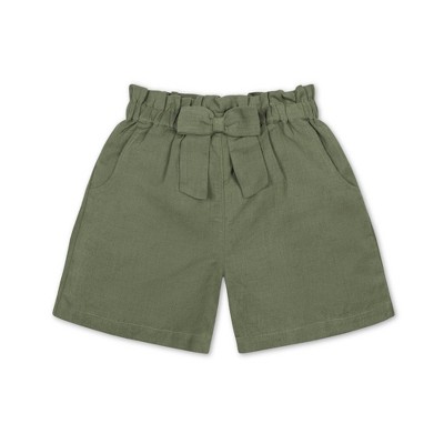 Hope & Henry Girls' Pull-On Cinched Waist Linen Short, Olive Light Linen, 18-24 Months