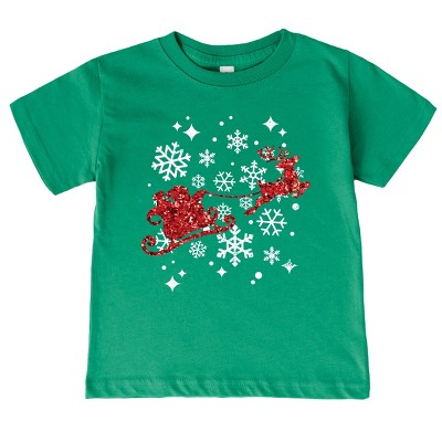 Santa Sleigh Glitter - Toddler Short Sleeve Tee and Kids Youth Short Sleeve Tee