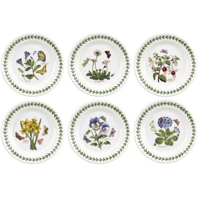 Portmeirion Botanic Garden Side Plates, Set of 6, Fine Earthenware, Made in England - Assorted Floral Motifs, 6.5 Inch