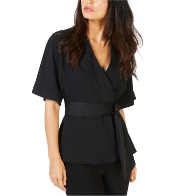 Puff Short Sleeve Ruffle Shirt for Women Deep V Neck Peplum Tops Waist Tie Chiffon Blouses Dressy Casual Waist Wrap Tops