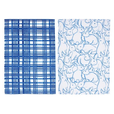C&F Home Blue Bunnies & Plaid Easter Spring Theme Kitchen Dishtowels Set of 2