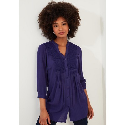 Roaman's Plus Size Knit Thermal Lace Trim Tunic – Long Sleeve