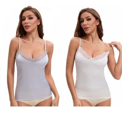 INSPIRE CHIC Women's Lace Trim Silk Satin V Neck Cami Vest Adjustable Spaghetti Strap Sleeveless Camisoles