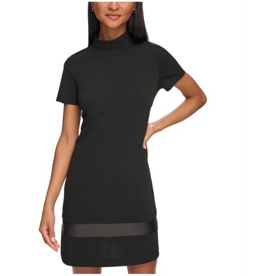 Women's Shoulder Shift Dress with Contrast Trim & Pockets - Short Sleeve Loose Fit Casual Dress